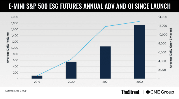 CME Group’s E-mini futures track the S&P 500 ESG Index, which updated eligibility requirements in April. According to Woolman, trading volumes involving 837 accounts are up 50% this year.