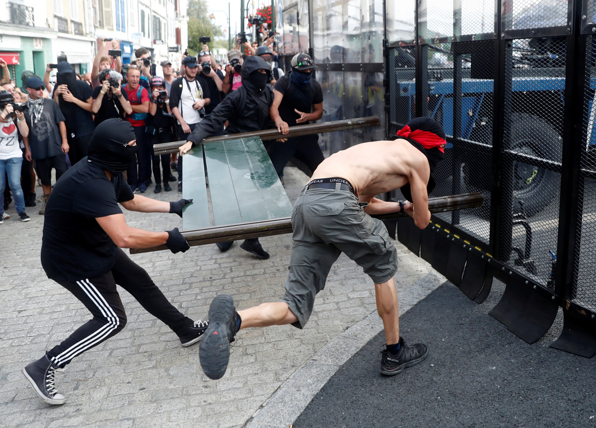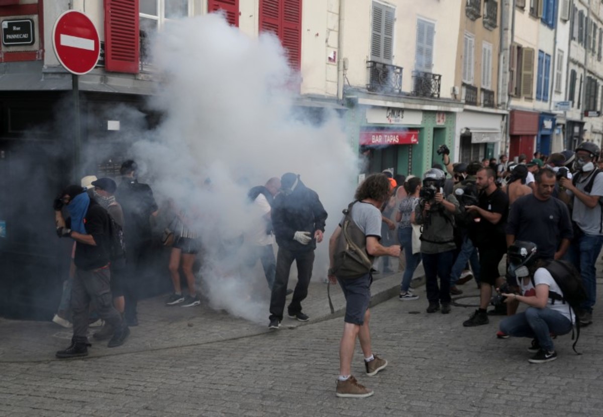 French riot police used water cannons and tear gas on Saturday to disperse anti-capitalism protesters in Bayonne, near Biarritz. A police helicopter circled as protesters taunted lines of police.