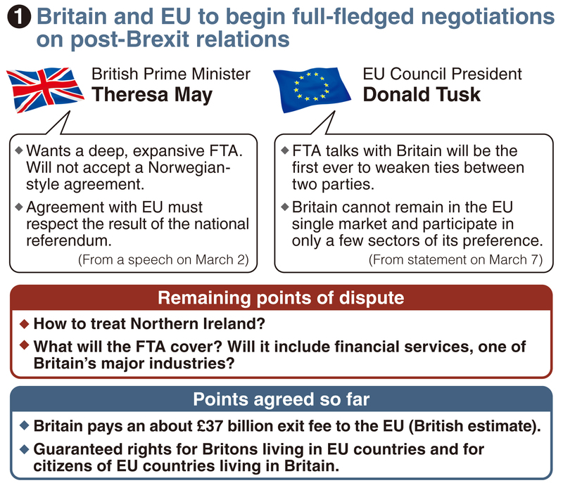 European Council President Donald Tusk clarified that his position differs from May's stance (see chart 1), saying on March 7: "In fact, this will be the first FTA in history that loosens economic ties, instead of strengthening them ... It will make it more complicated and costly than today, for all of us. This is the essence of Brexit."