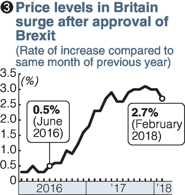 The increase was driven by a decrease in the value of the pound, which was around 160 yen before the referendum but briefly fell to around 125, yen causing the price of imported goods to rise. (1 pound is currently worth about 150 yen.)