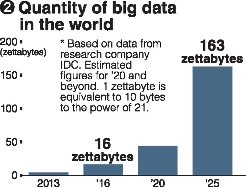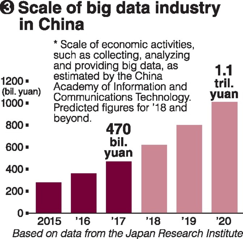 In addition to establishing big data pilot zones for such purposes as research and development and the improvement of big data-related infrastructure, the Chinese government this year approved the introduction of big data departments at over 200 educational institutions, including universities, with the aim of training personnel.