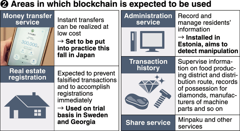 Smartphones could be used to transfer money easily 24 hours a day, 365 days a year. Banks could also set money transfer fees 10 percent or lower than the usual ones. If payment flexibility increases, it will lead to the creation of new businesses. Takashi Okita, chief executive officer of SBI Ripple Asia, which acts as a central office for money transfer services, said, "Japan is at the forefront of blockchain technology; this is a chance to lead in technology again."