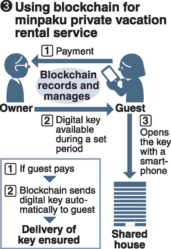 Due to its characteristic of making data difficult to falsify, research is being advanced on blockchain's uses for the distribution history of food products and real estate registration. (See chart 2) Walmart and IBM of the United States announced last December that they would embark on managing food product distribution history in China. Their aim is to improve food safety. There are also expectations of blockchain being applied to minpaku private residence vacation rentals and "shared services." (See chart 3)