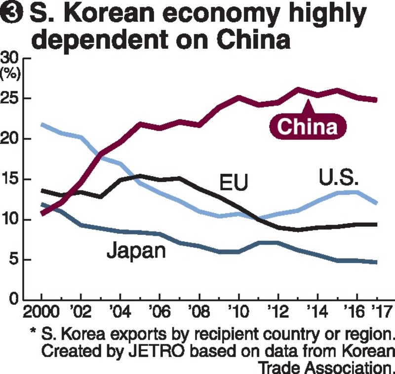 South Korea is highly dependent on exports, which account for about 50 percent of its gross domestic product. Semiconductors' share of total exports climbed from 8 percent in 2011 to 16 percent in 2017, demonstrating their importance to the economy.