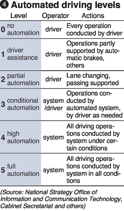 In January, U.S. automaker General Motors Co. announced plans to put Level 4 to practical use as early as 2019, and U.S. authorities expressed their inclination to support this effort as well.