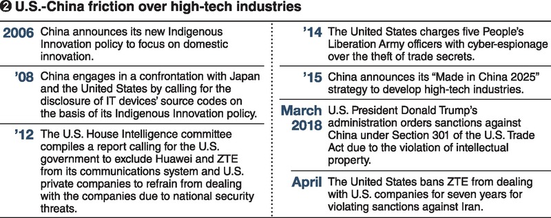 Since this year began, actions to shut out products by Huawei and ZTE are gaining strength. In April, the Trump administration levied sanctions against ZTE for reasons including the company's violation of sanctions against Iran. U.S. companies were prohibited from exporting to ZTE.