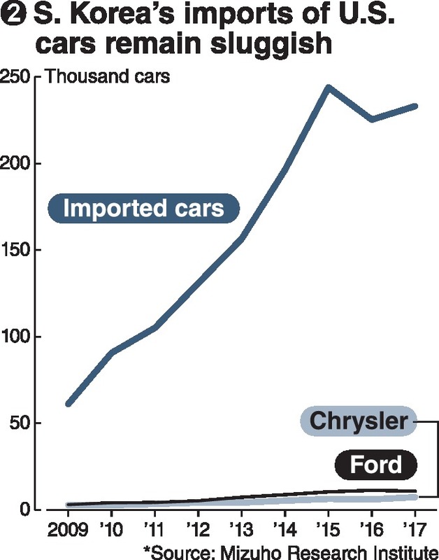 In South Korea, growth in U.S. car imports is sluggish. General Motors Co. manufactures cars in South Korea, but has decided to close some factories, giving rise to the speculation that it might pull out of local production. While South Korea's auto imports are rising overall, there are some who view that this trend is caused mainly by Japanese and other automakers exporting vehicles from the United States after the FTA took effect. As in the Japanese market, U.S. automakers are struggling in South Korea.