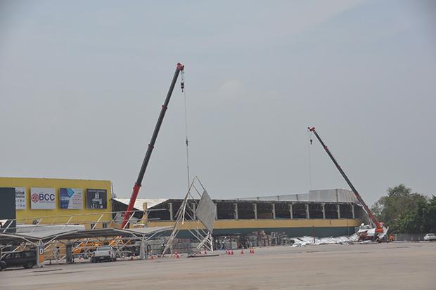 Pisit Wataniyanon, deputy director of the Nakhon Ratchasima branch, said on Tuesday after the inspection that an insurance company he did not name was assessing the overall damage. About 20 vehicles in the customer parking area were damaged by fallen roofing, he said.