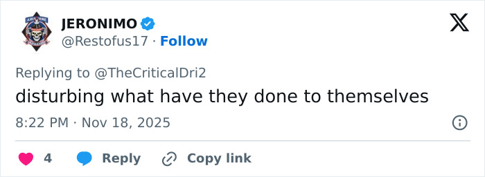 One commenter wrote, “Y’all talking about ‘Wicked healed her,’ looks like it sucked the life outta her.”