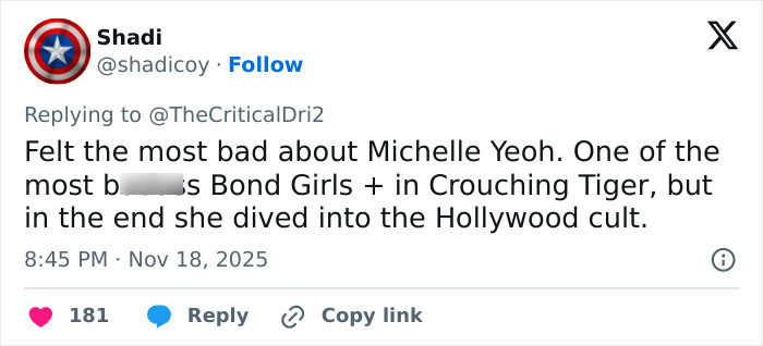Numerous commenters were quite shocked by just how different the actresses looked, especially Yeoh, who is known for acting in action films that demand a lot of physical stunts.
