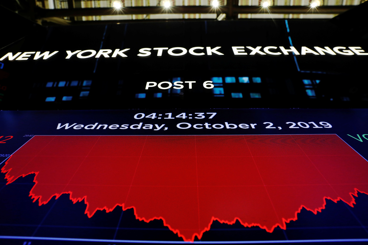 NEW YORK (Reuters) - World equity benchmarks hit their lowest levels in a month on Wednesday as signs of a slowdown in U.S. economic growth and weak earnings in Europe fanned fears that the U.S.-China trade war could push the global economy into a recession.