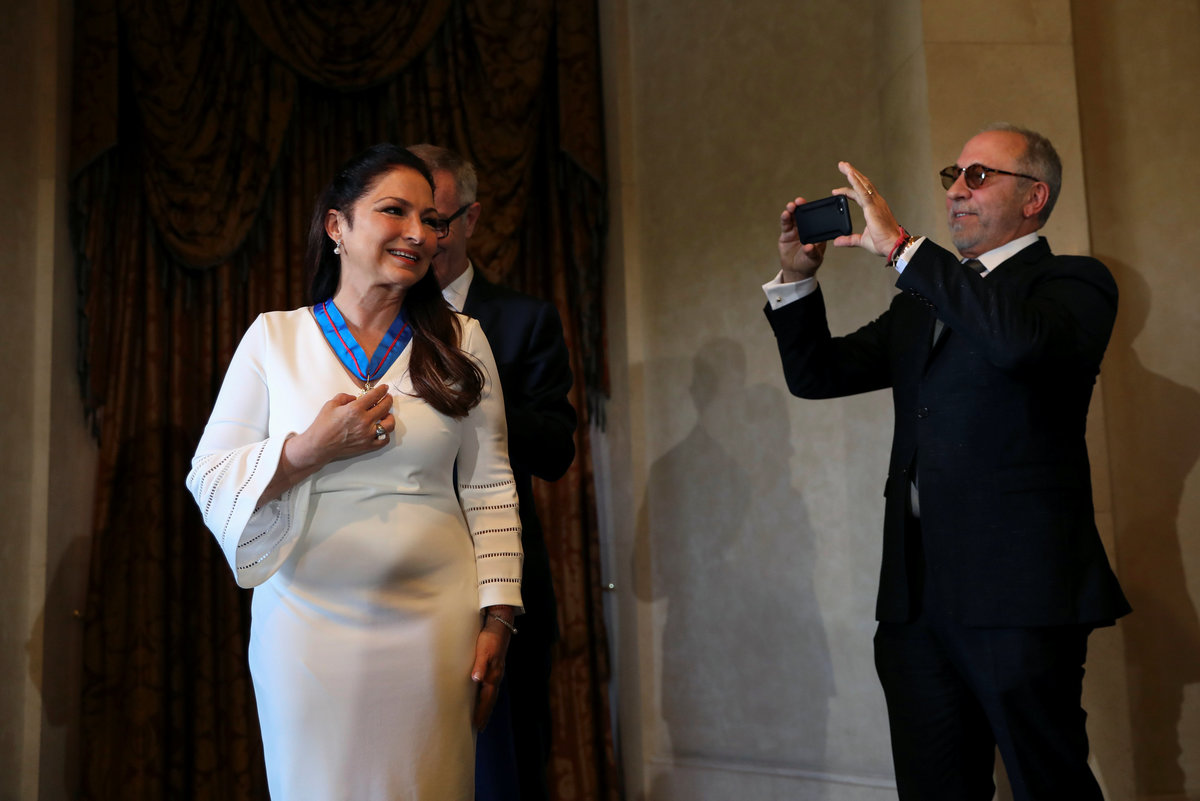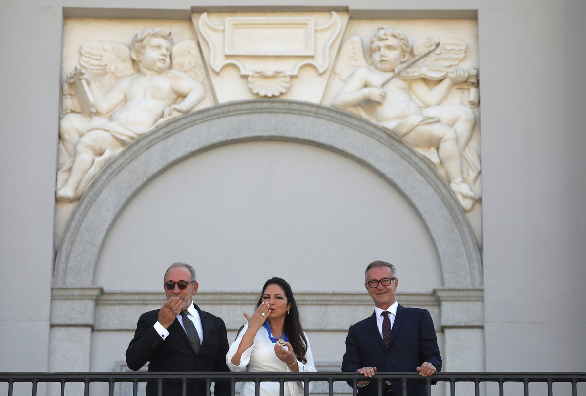 Cuban-American singer Gloria Estefan and her husband Emilio Estefan blow kisses after Gloria was awarded Spain's Gold Medal of Merit for the Arts from Spain's Culture Minister Jose Guirao Cabrera (R) in Madrid, Spain, July 23, 2018. REUTERS/Susana VeraCuban-American singer Gloria Estefan reacts towards her husband Emilio Estefan as she waits to be awarded with Spain's Gold Medal of Merit for the Arts from Spain's Culture Minister Jose Guirao Cabrera in Madrid, Spain, July 23, 2018. REUTERS/Susana VeraCuban-American singer Gloria Estefan arrives to be awarded with Spain's Gold Medal of Merit for the Arts from Spain's Culture Minister Jose Guirao Cabrera in Madrid, Spain, July 23, 2018. REUTERS/Susana Vera
