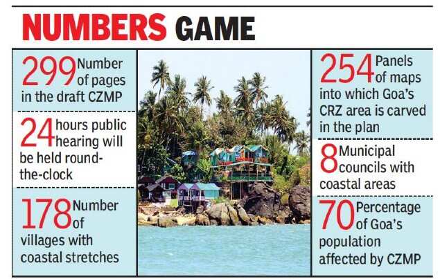 PANAJI: Around a thousand participants each in North and South Goa are expected to participate in the public hearing on the draft coastal zone management plan (CZMP), starting on Thursday. Officials said that the hearing, which will start at 10am, will take place round-the-clock till all participants have completed their presentations.