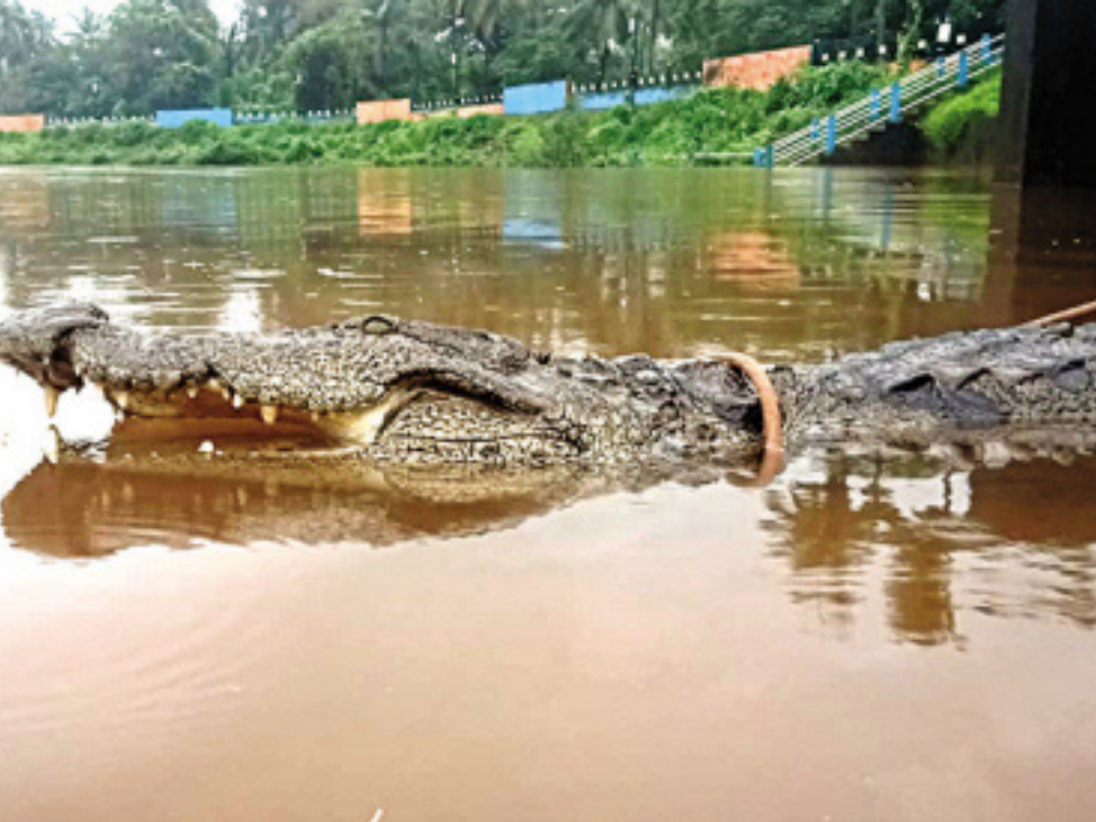 The crocodile was found near the Ganesh idol immersion spot located at the walking track along the Bicholim river bank. The mugger was sighted by some locals who had come at the track late in the morning.