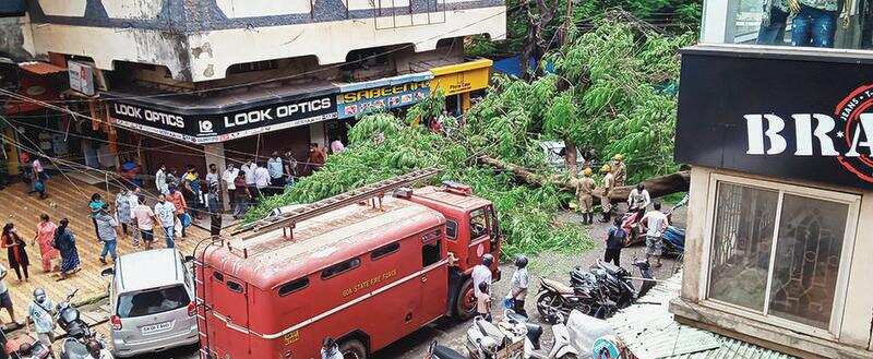 The vendors had expected the tree to fall during Cyclone Tauktae and had stopped people from parking below the tree for some time.