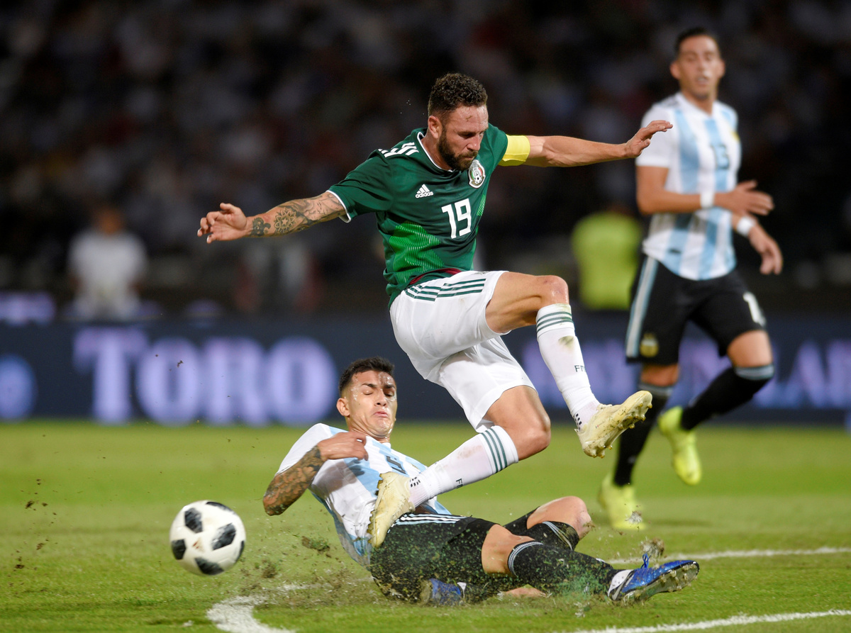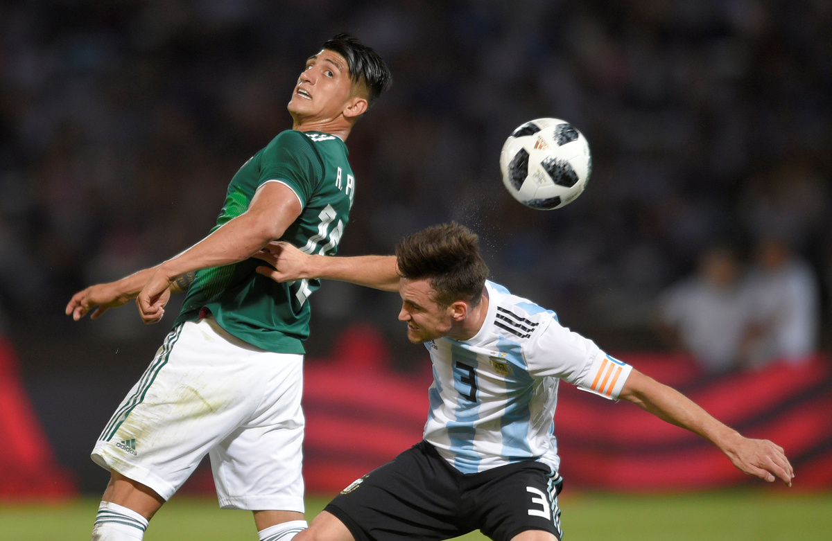 Soccer Football - International Friendly - Argentina v Mexico - Estadio Mario Alberto Kempes, Cordoba, Argentina - November 16, 2018 Mexico's Miguel Layun in action with Argentina's Nicolas Tagliafico REUTERS/Gustavo Garello