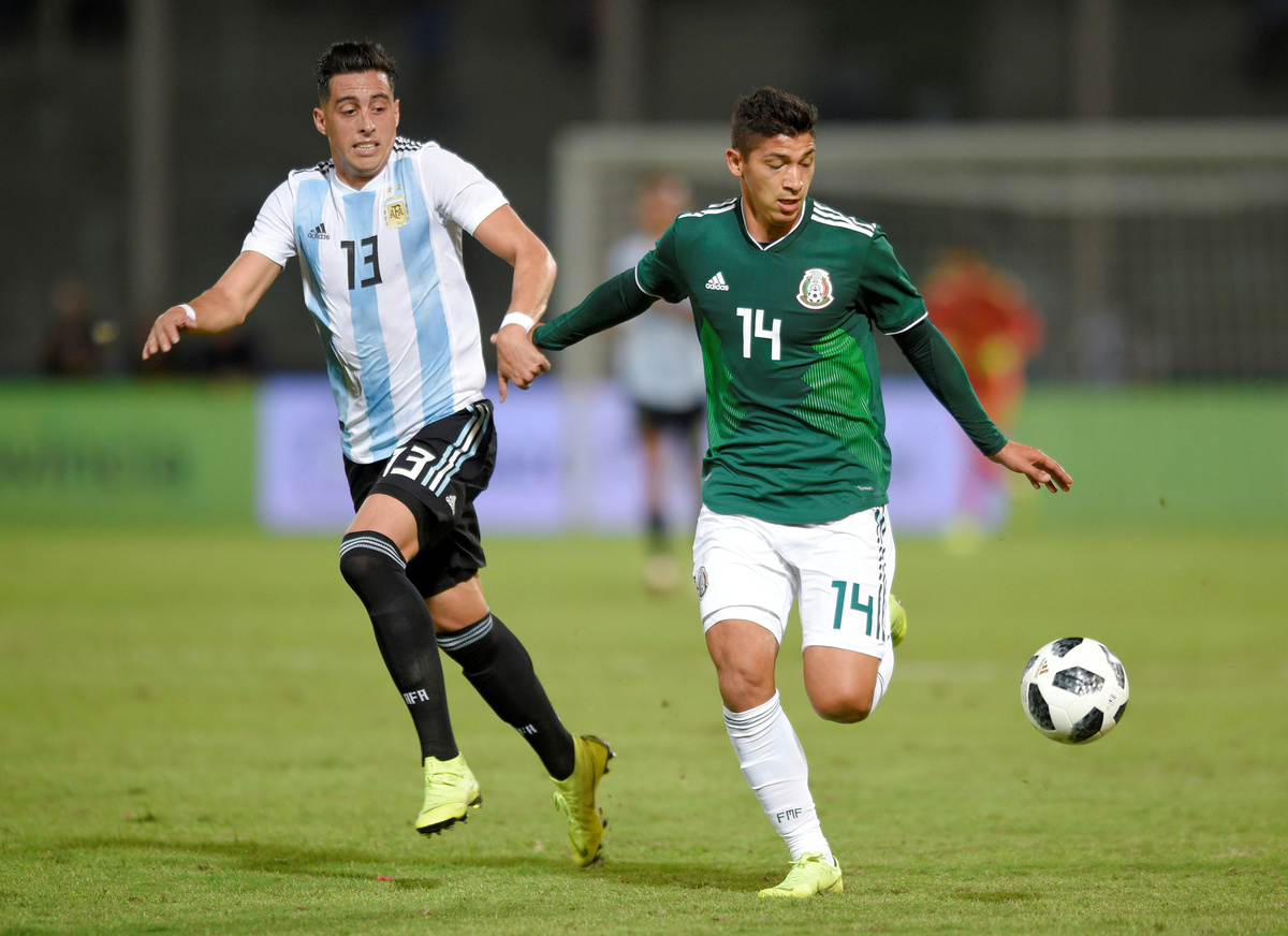 Soccer Football - International Friendly - Argentina v Mexico - Estadio Mario Alberto Kempes, Cordoba, Argentina - November 16, 2018 Mexico's Alan Pulido in action with Argentina's Giovani Lo Celso REUTERS/Gustavo Garello
