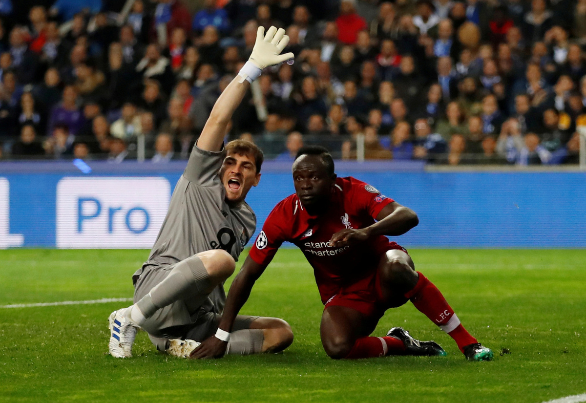 FILE PHOTO: Soccer Football - Champions League Quarter Final Second Leg - FC Porto v Liverpool - Estadio do Dragao, Porto, Portugal - April 17, 2019 Liverpool's Sadio Mane celebrates scoring their first goal as FC Porto's Iker Casillas reacts Action Images via Reuters/Andrew Boyers/File PhotoFILE PHOTO: Soccer Football - La Liga Santander - Real Madrid v Villarreal - Santiago Bernabeu, Madrid, Spain - May 5, 2019 Real Madrid's Thibaut Courtois and Marcelo wear shirts in honour of former player Iker Casillas before the match REUTERS/Juan Medina/File Photo