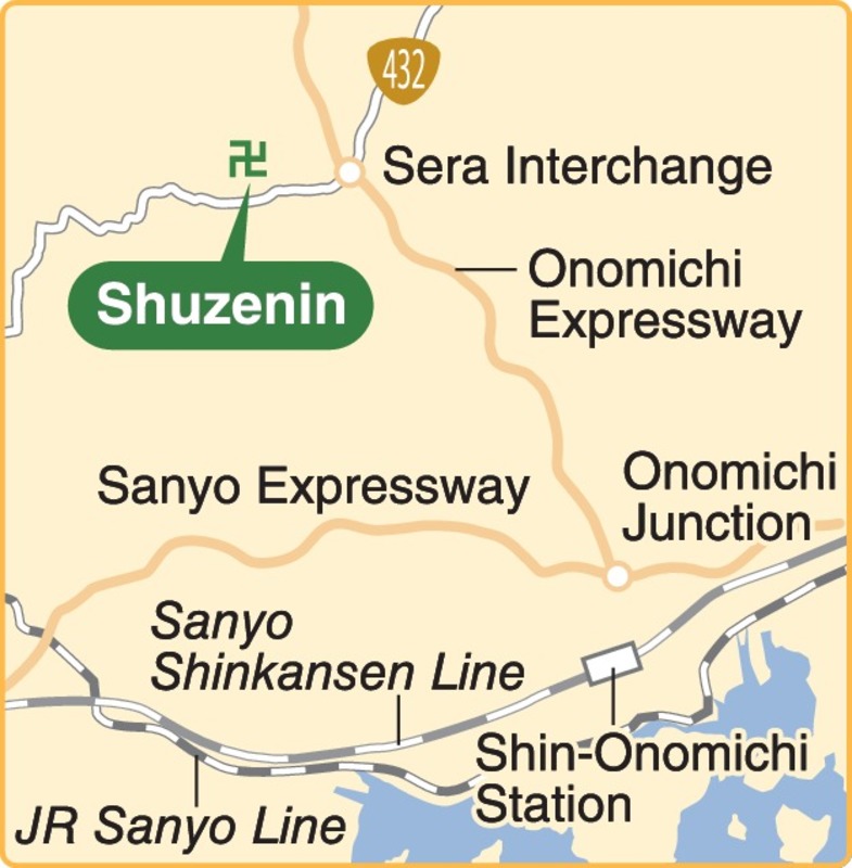 About 10 minutes by car from the Sera Interchange on the Onomichi Expressway. A reservation is required to see the temple's collection of shoes.