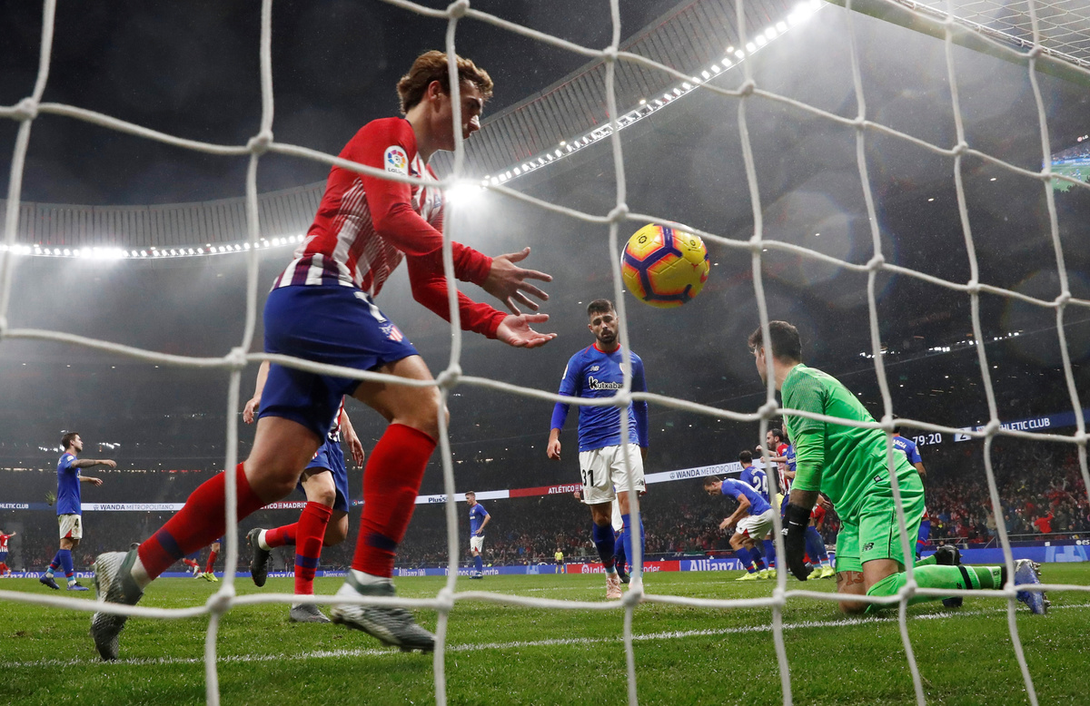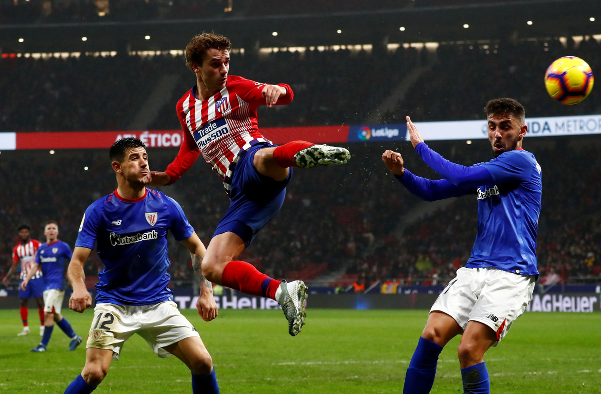 MADRID (Reuters) - Atletico Madrid twice came from behind to pull off a thrilling 3-2 win at home to Athletic Bilbao on Saturday, completing their comeback with a stoppage-time header from limping captain Diego Godin.