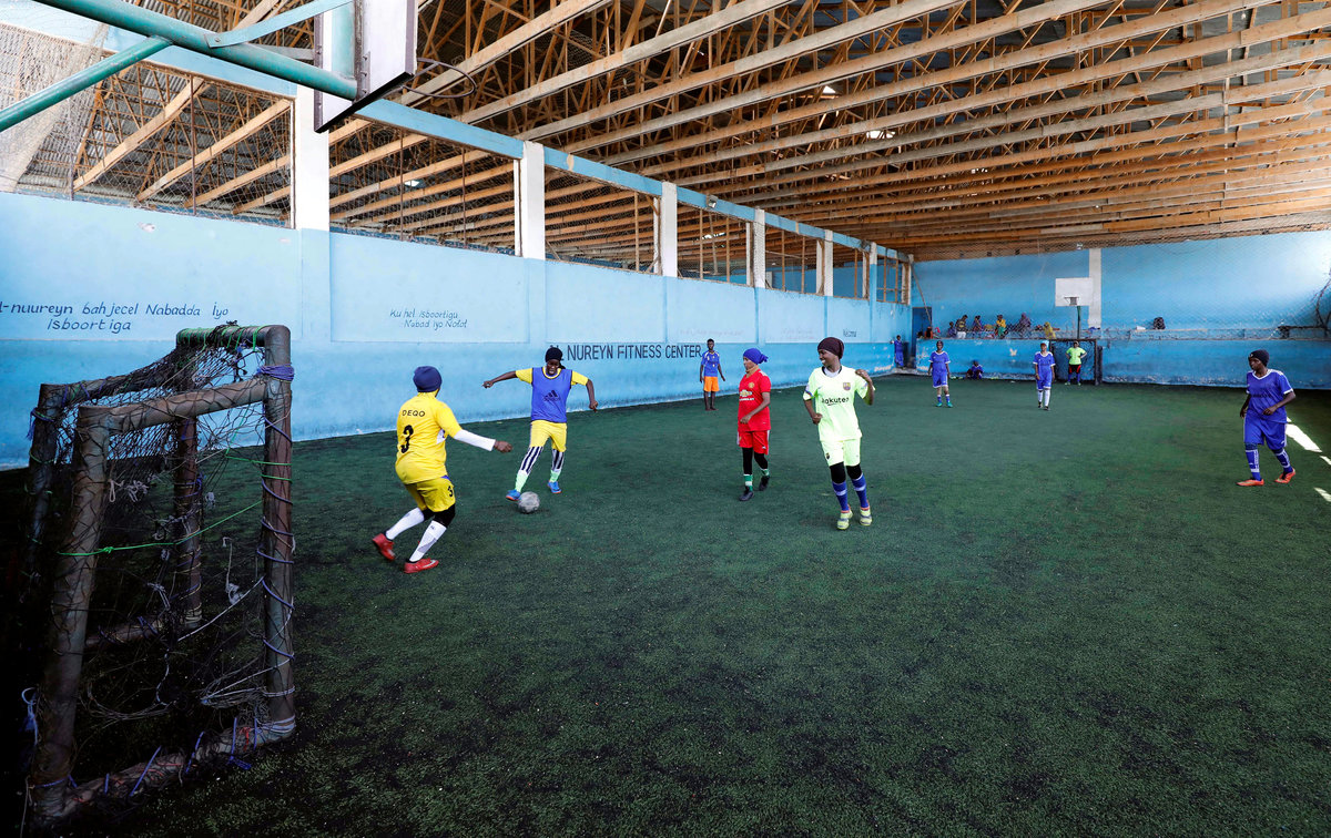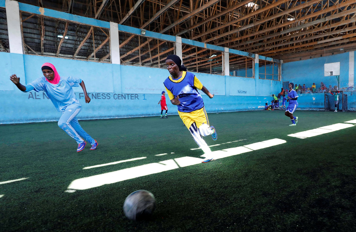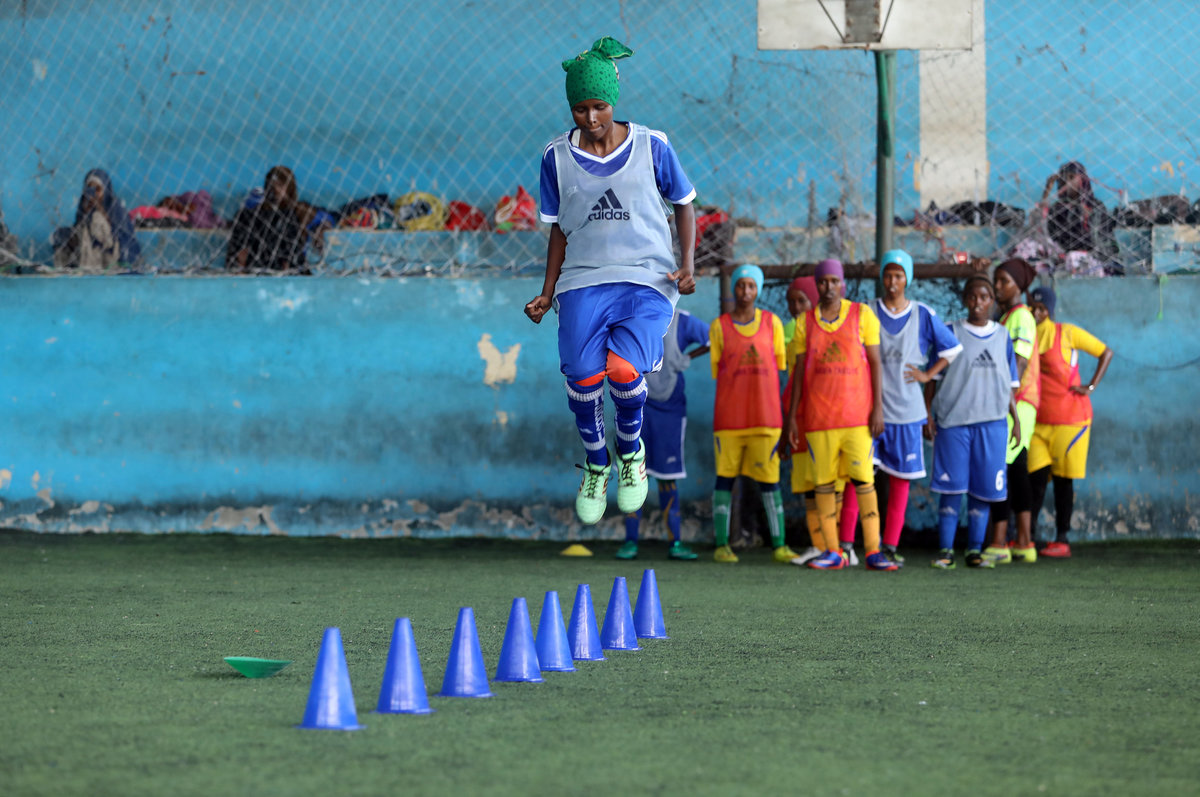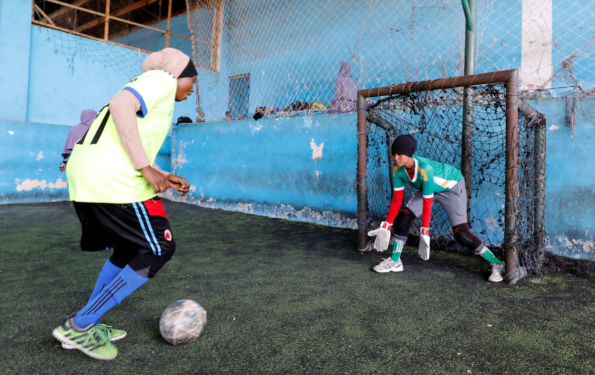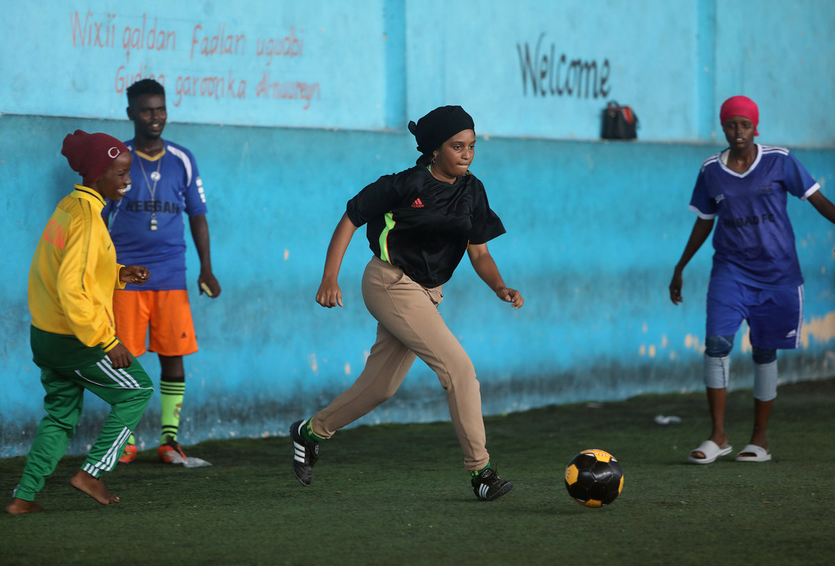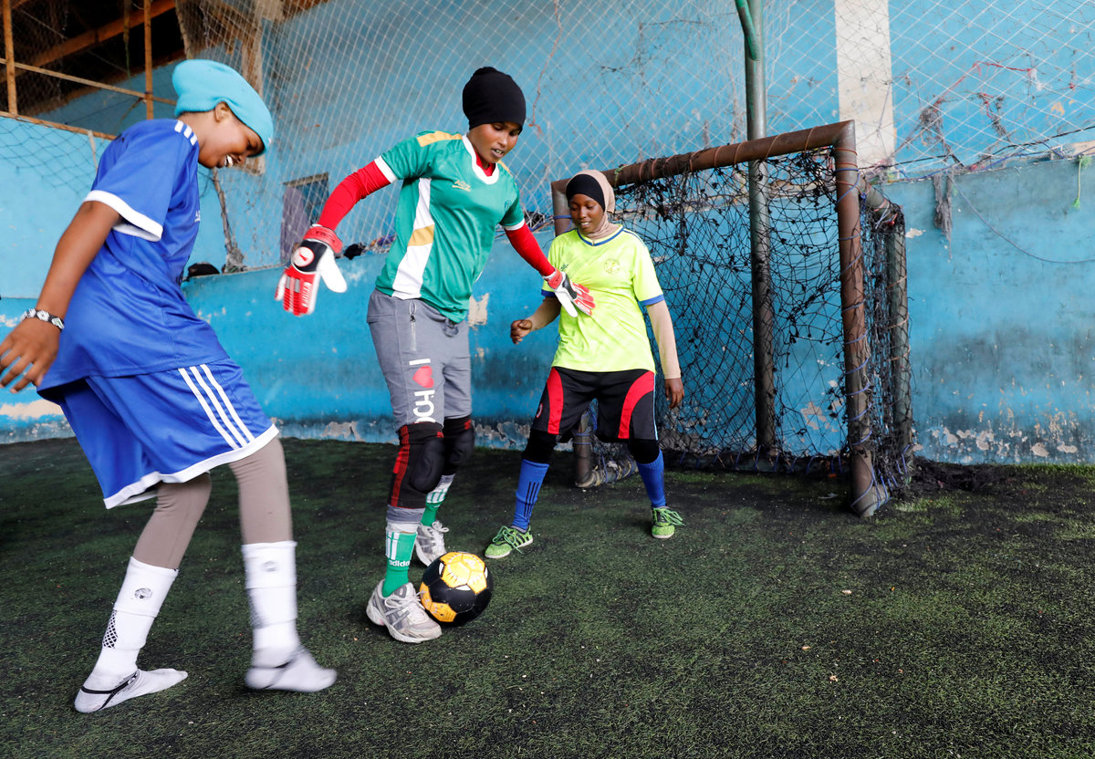 MOGADISHU (Reuters) - On a tired artificial pitch near a Mogadishu street that has been hit with a series of explosions, Shaima Sallal Mohamed is tackling the stereotype that soccer in Somalia is only for men.