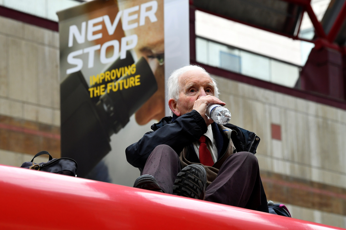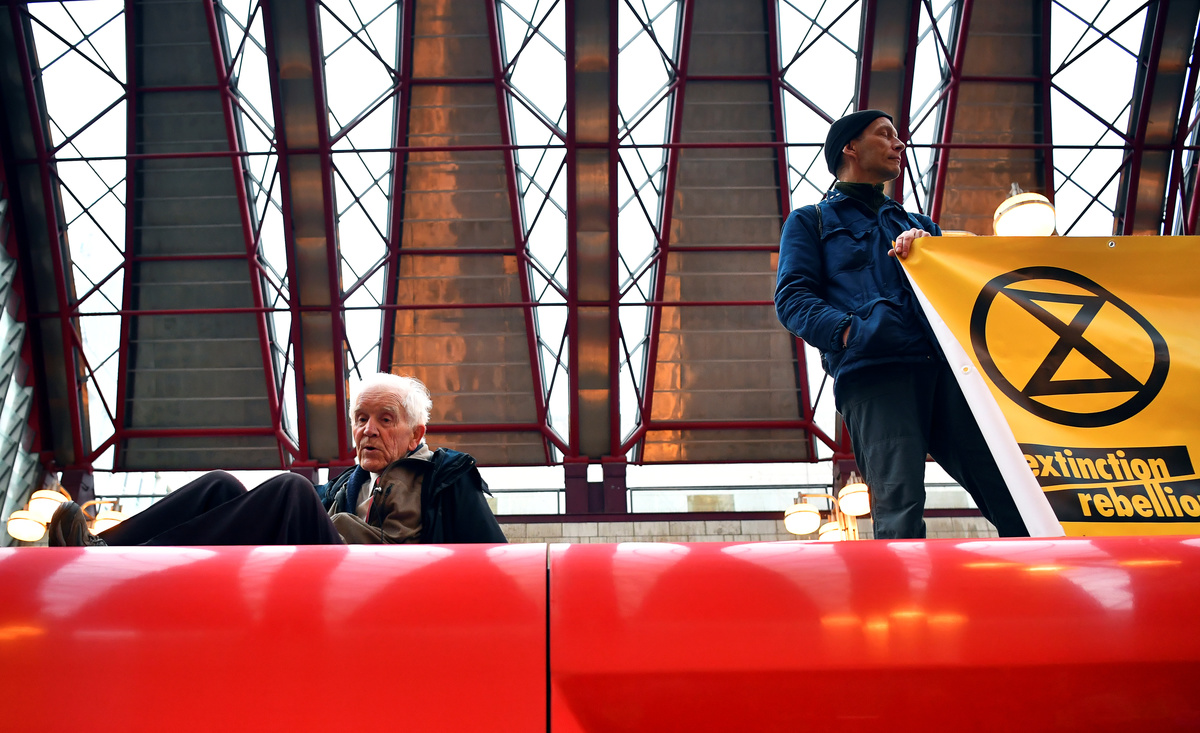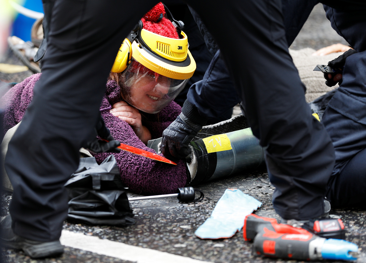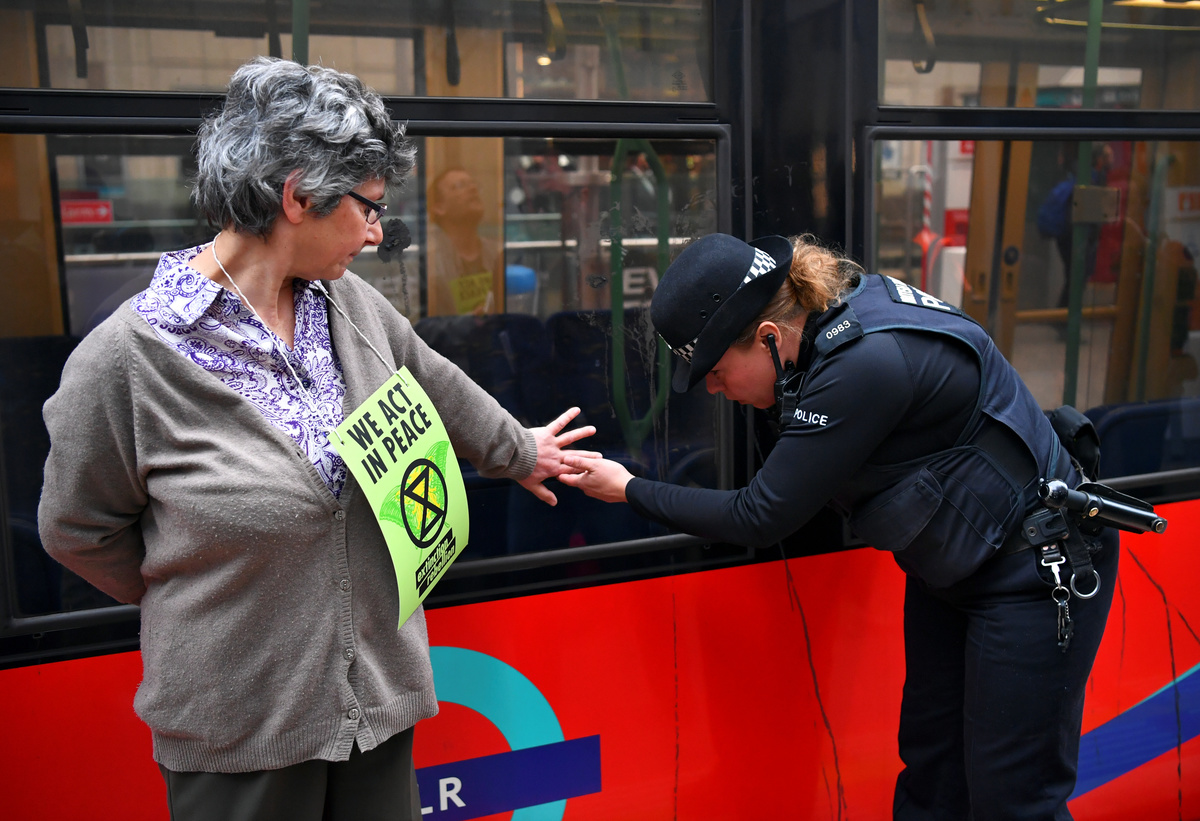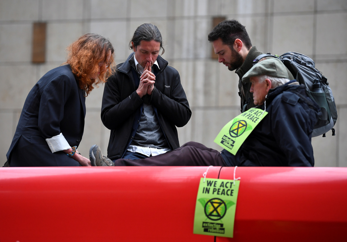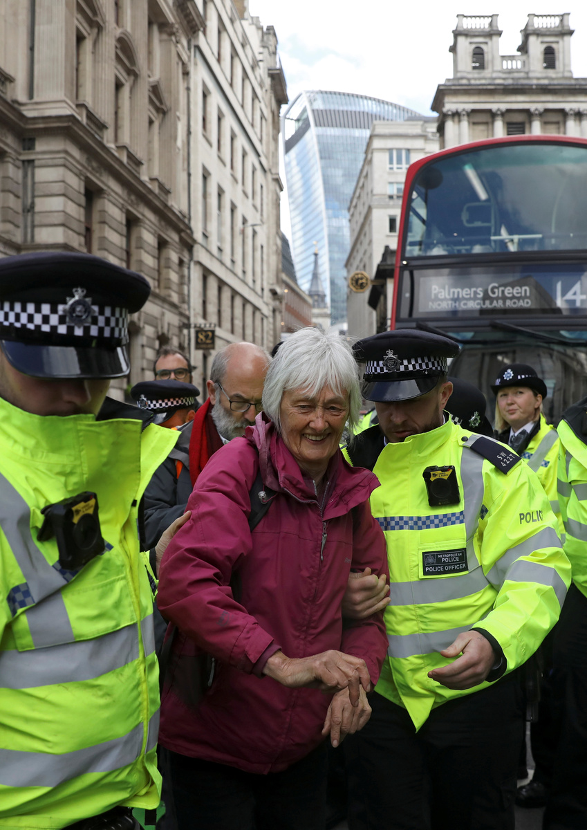 Protesters block traffic outside The Bank of England during the Extinction Rebellion protest in London, Britain April 25, 2019. REUTERS/Simon DawsonProtesters block traffic outside Nomura Bank during the Extinction Rebellion protest London, Britain April 25, 2019. REUTERS/Simon DawsonProtesters block traffic outside The Bank of England during the Extinction Rebellion protest London, Britain April 25, 2019. REUTERS/Simon DawsonA protester is taken away by police as demonstrators block traffic at Fleet Street during the Extinction Rebellion protest in London, Britain April 25, 2019. REUTERS/Peter NichollsA protester is taken away by police as demonstrators block traffic at Fleet Street during the Extinction Rebellion protest in London, Britain April 25, 2019. REUTERS/Peter NichollsA protester wears a protective mask put by the police as they attempt to remove protective casing in which a she has put her hand, as protesters block traffic at Fleet Street during the Extinction Rebellion protest in London, Britain April 25, 2019. REUTERS/Peter NichollsPolice attempt to remove protesters lying on the road as they block traffic at Fleet Street during the Extinction Rebellion protest in London, Britain April 25, 2019. REUTERS/Peter NichollsA protester is taken away by police as demonstrators block traffic at Fleet Street during the Extinction Rebellion protest in London, Britain April 25, 2019. REUTERS/Peter NichollsPolice surround a demonstrator lying on the road as demonstrators block traffic at Fleet Street during the Extinction Rebellion protest in London, Britain April 25, 2019. REUTERS/Peter NichollsA protester is taken away by police as demonstrators block traffic outside The Bank of England during the Extinction Rebellion protest in London, Britain April 25, 2019. REUTERS/Simon DawsonClimate protesters glued their hands together in front of HM Treasury in Westminster during the Extinction Rebellion protest in London, Britain April 25, 2019. REUTERS/Peter NichollsA protester is taken away by police as demonstrators block traffic at Fleet Street during the Extinction Rebellion protest in London, Britain April 25, 2019. REUTERS/Peter NichollsPolice surround demonstrators lying on the road as they block traffic at Fleet Street during the Extinction Rebellion protest in London, Britain April 25, 2019. REUTERS/Peter NichollsProtesters pray on top of a train block traffic at Canary Wharf Station during the Extinction Rebellion protest in London, Britain April 25, 2019. REUTERS/Dylan MartinezPhil Kingston, 83, sits on top of a DLR train as demonstrators block traffic at Canary Wharf Station during the Extinction Rebellion protest in London, Britain April 25, 2019. REUTERS/Dylan MartinezPhil Kingston, 83, sits on top of a DLR train as demonstrators block traffic at Canary Wharf Station during the Extinction Rebellion protest in London, Britain April 25, 2019. REUTERS/Dylan MartinezPhil Kingston, 83, sits on top of a DLR train as demonstrators block traffic at Canary Wharf Station during the Extinction Rebellion protest in London, Britain April 25, 2019. REUTERS/Dylan MartinezA police officer tries to remove the hand of protester Diana Warner, glued to a train, as demonstrators block traffic at Canary Wharf Station during the Extinction Rebellion protest in London, Britain April 25, 2019. REUTERS/Dylan MartinezPolice stands guards as demonstrators glue their hands to the London stock exchange during the Extinction Rebellion protest in London, Britain April 25, 2019. REUTERS/Simon DawsonPhil Kingston, 83, takes part in a demonstration blocking the traffic at Canary Wharf Station, during the Extinction Rebellion protest in London, Britain April 25, 2019. REUTERS/Dylan MartinezDemonstrators stand on top of a DLR train as they block the traffic at Canary Wharf Station, during the Extinction Rebellion protest in London, Britain April 25, 2019. REUTERS/Dylan MartinezPolice stands guard as demonstrators glue their hands to the London stock exchange during the Extinction Rebellion protest in London, Britain April 25, 2019. REUTERS/Simon Dawson