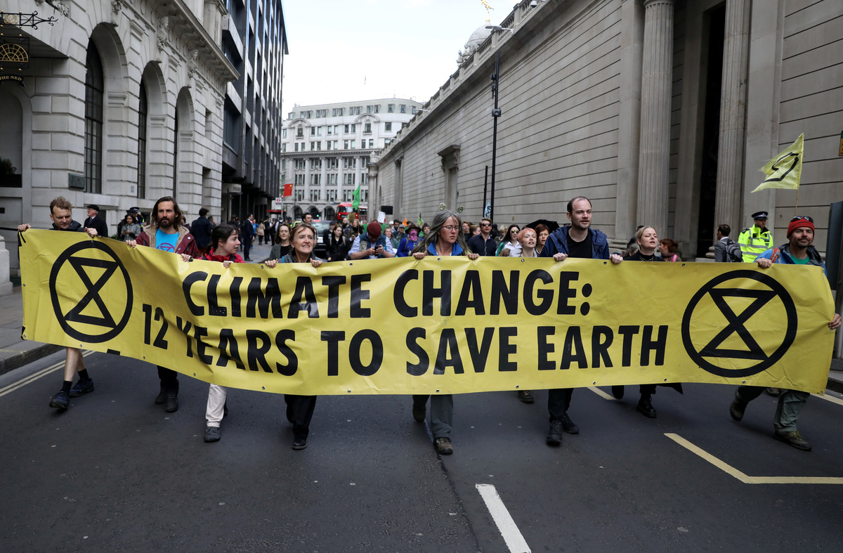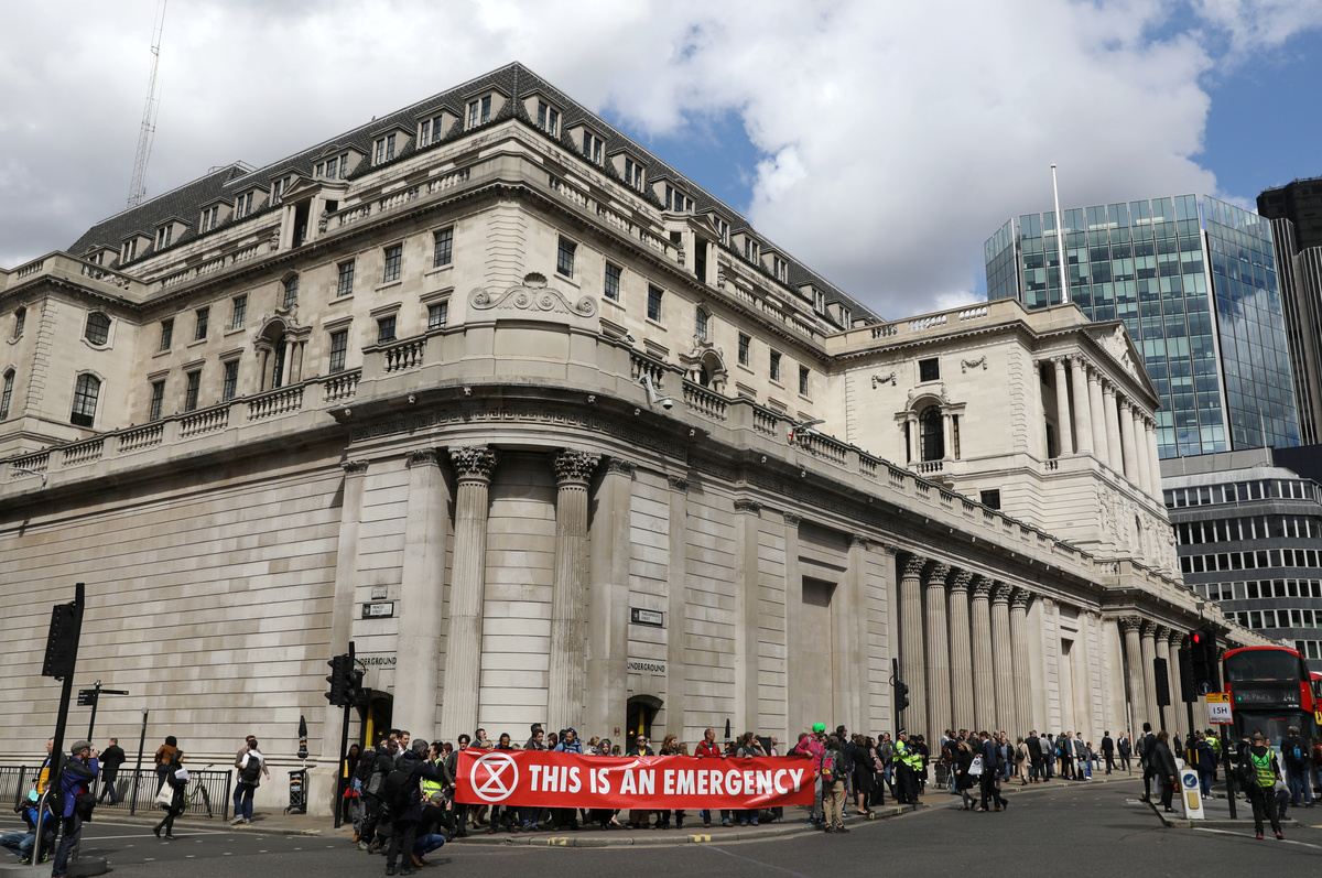 Protesters block traffic outside The Bank of England during the Extinction Rebellion protest in London, Britain April 25, 2019. REUTERS/Simon Dawson
