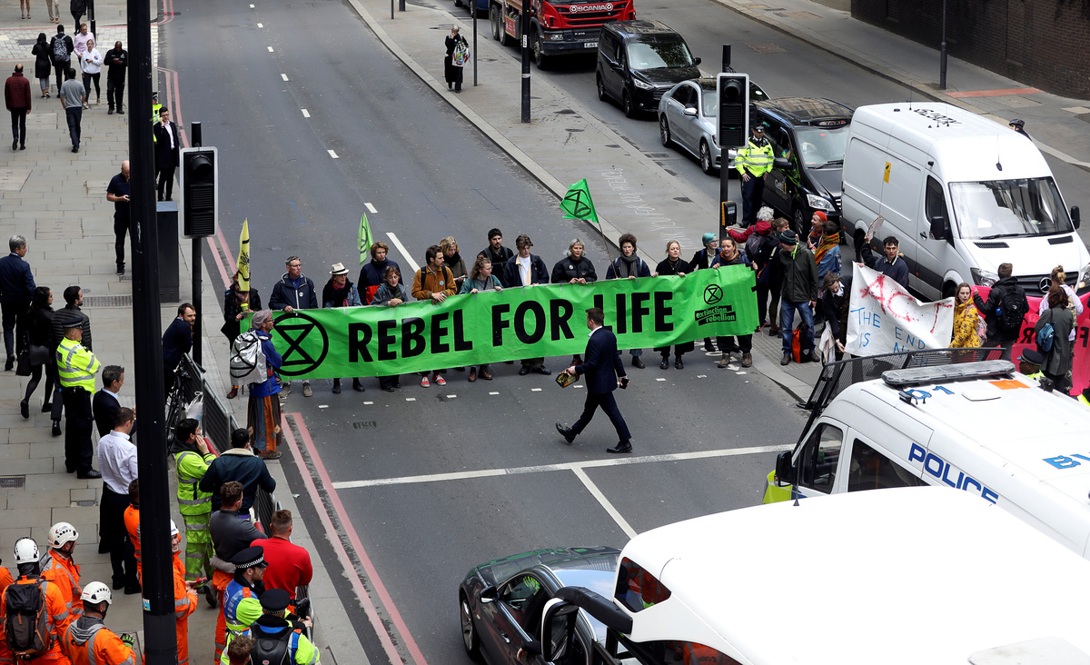 Extinction Rebellion advocates non-violent civil disobedience to force governments to reduce carbon emissions and avert what it says is a global climate crisis that will bring starvation, floods, wildfires and social collapse.