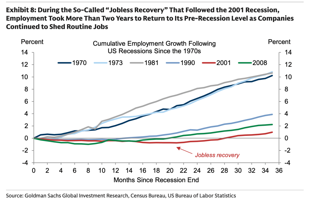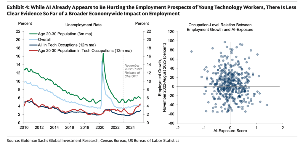 As “jobless growth” becomes entrenched, Goldman Sachs expects policymakers to face tough new choices. Central banks could be forced to keep interest rates lower in response to subpar job creation and modestly higher unemployment, while markets may see mixed effects. Asset prices could be supported by healthy output and low rates, but only if unemployment remains contained and new kinds of jobs emerge to offset losses caused by AI.