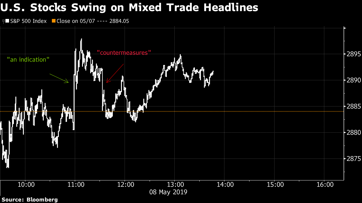 U.S. markets gyrated on Wednesday as investors grappled with conflicting headlines on whether the trading relationship between the world’s two largest economies will truly take a turn for the worse.