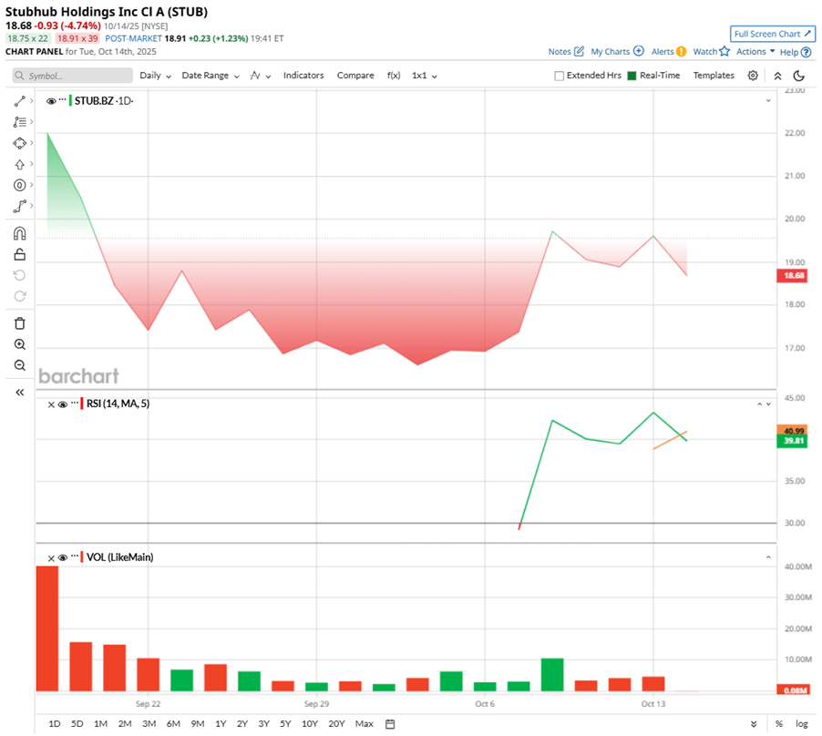 Since its Sept. 17 IPO, STUB stock has had a bumpy ride, opening the door to public markets with a splash but closing its first day down by 6.8%. The ticketing platform raised roughly $800 million, yet early trading painted a choppier picture than fans snapping up concert or game tickets.