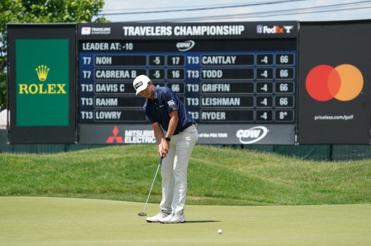 Playing the back nine first at the TPC River Highlands, Hughes was in blistering form as he strung together a run of five straight birdies from the 14th on his outward nine and picked up four more after the turn.