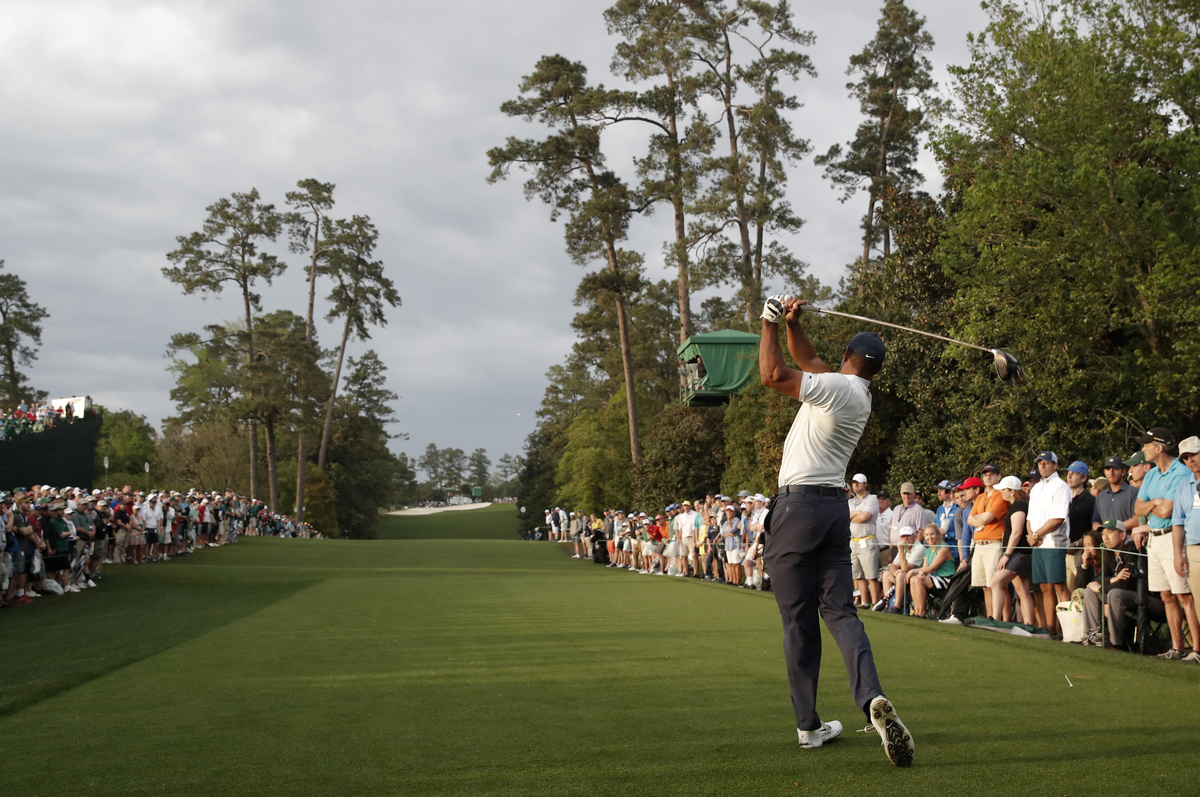 Several prominent players were still on the course when the horn blasted, including Rory McIlroy and Tiger Woods, who had just hit his tee shot on the par-three 12th.