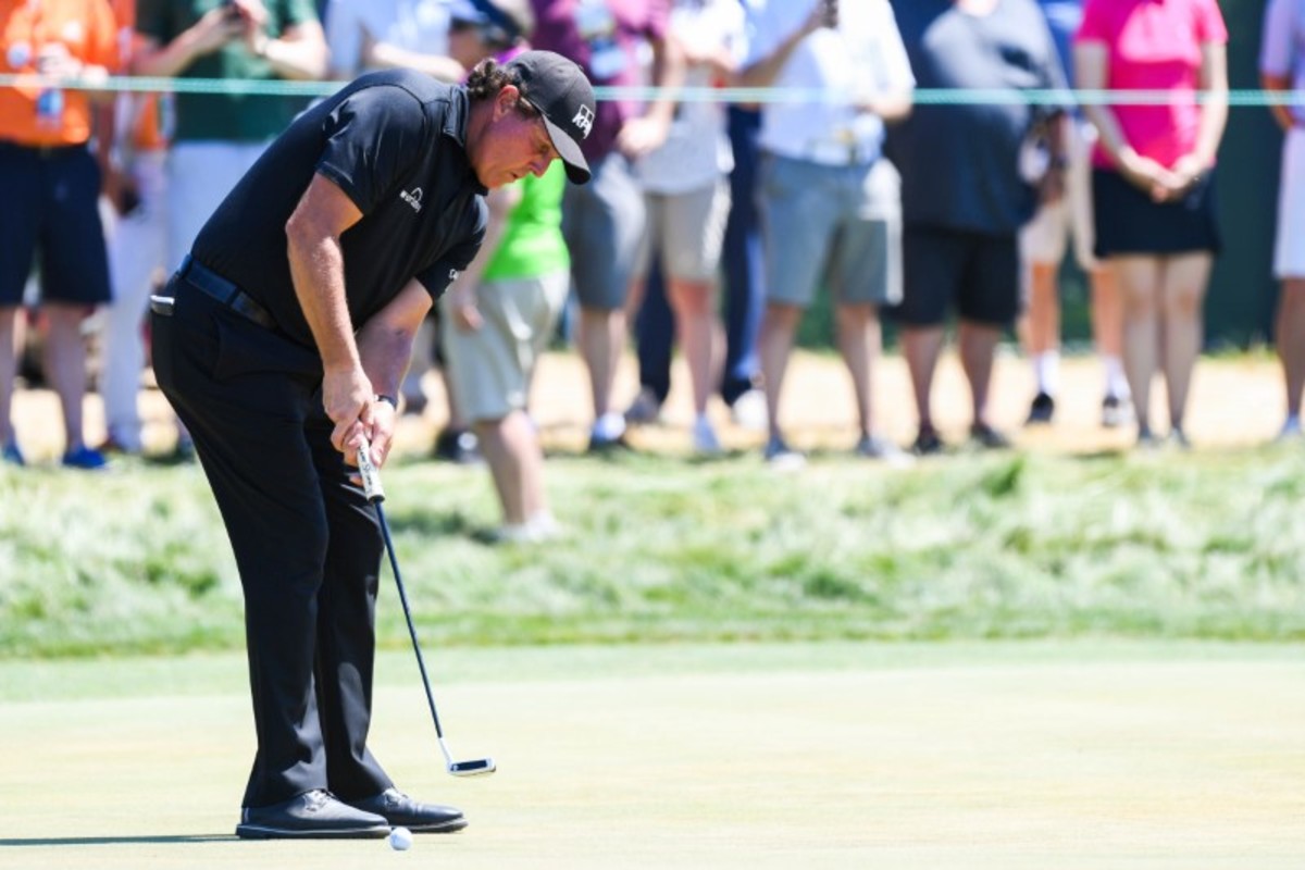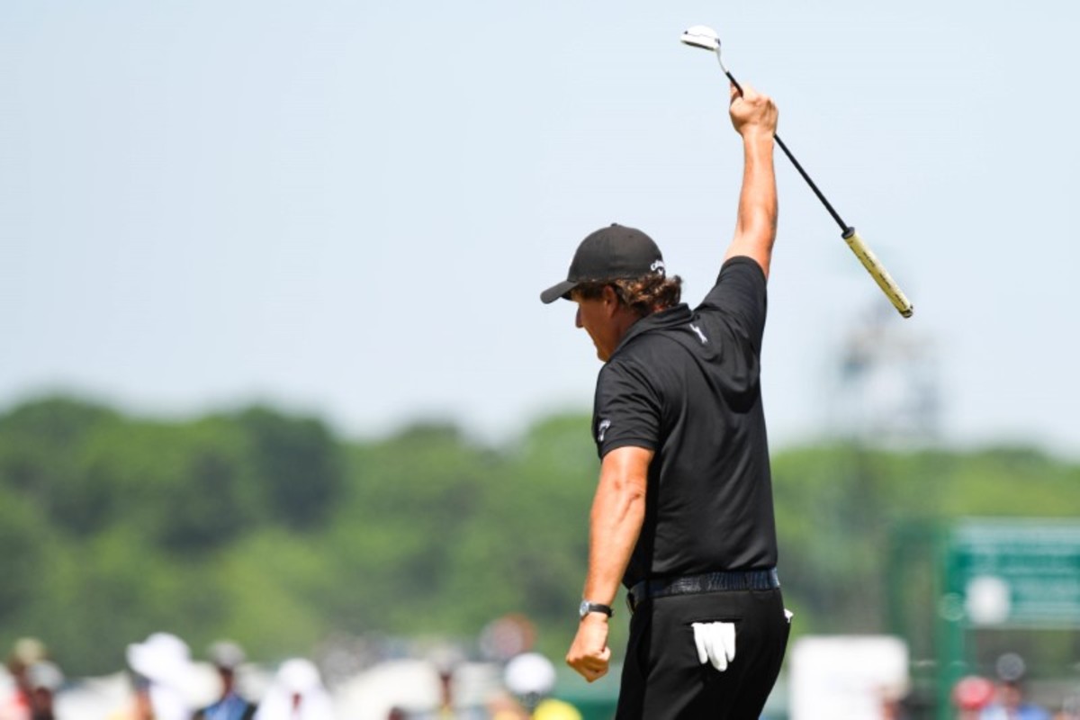 SOUTHAMPTON, N.Y. (Reuters) - Phil Mickelson theatrically parred the 13th hole in the final round of the U.S. Open on Sunday - a day after drawing a storm of criticism by hitting a moving ball on the same green.