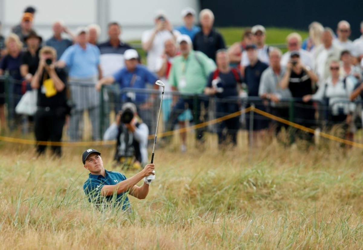 CARNOUSTIE, Scotland (Reuters) - Jordan Spieth has a chance to keep pace with Tiger Woods' major championship tally after vaulting into a share of the third-round lead at the British Open on Saturday.