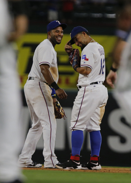 Gomez's three-run homer in the second inning gave the Rangers a 3-0 lead. It was Gomez's first at-bat for the Rangers. The Rangers scored five more times in the fifth to lead, 8-0. Texas had four hits in the inning, including a three-run homer by Adrian Beltre. Indians' first baseman Mike Napoli made two errors in the inning. Rougned Odor made it 9-0 with a solo homer in the eighth. The Rangers had eight hits in the game to the Indians' two.