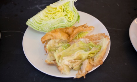 Pretty soon, though, we’re not feeling so chipper. “I need a nap,” groans Thomas. I’m feeling like I should check myself into a cardiology ward. Even Thomlinson, who’s bearing up surprisingly well, is mumbling: “Someone will be not very well if we serve them this.” A quick calculation later and the mistake is realised. Without batter, this was a meal for one; battered and fried, it’s a heavy portion that would fill four. We should have figured that out earlier, really. After all, this dish was no small fry.