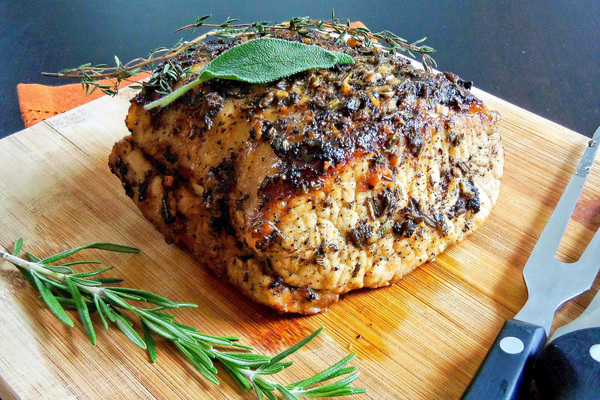 Take for instance herb-crusted pork loin _ it's no muss, no fuss and simply mouthwatering. I got the inspiration for the pork loin dish from Ina Garten's Herb-Roasted Turkey Breast recipe in "Barefoot Contessa, How Easy Is That" (Clarkson Potter/Publishers, 2010), where she rubs a rosemary-sage-thyme-dry mustard mixture over and under the skin of a turkey breast and roasts the meat for about two hours in the oven.
