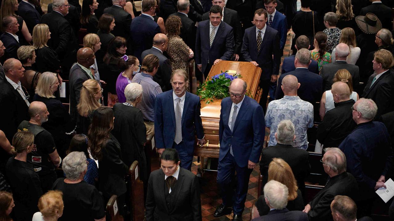 His close friend Crowe headlined an impressive list of mourners, with prominent leaders including former prime minister John Howard, renegade former Nationals leader Barnaby Joyce and NSW Premier Chris Minns among those at St Andrew's Cathedral in Sydney.