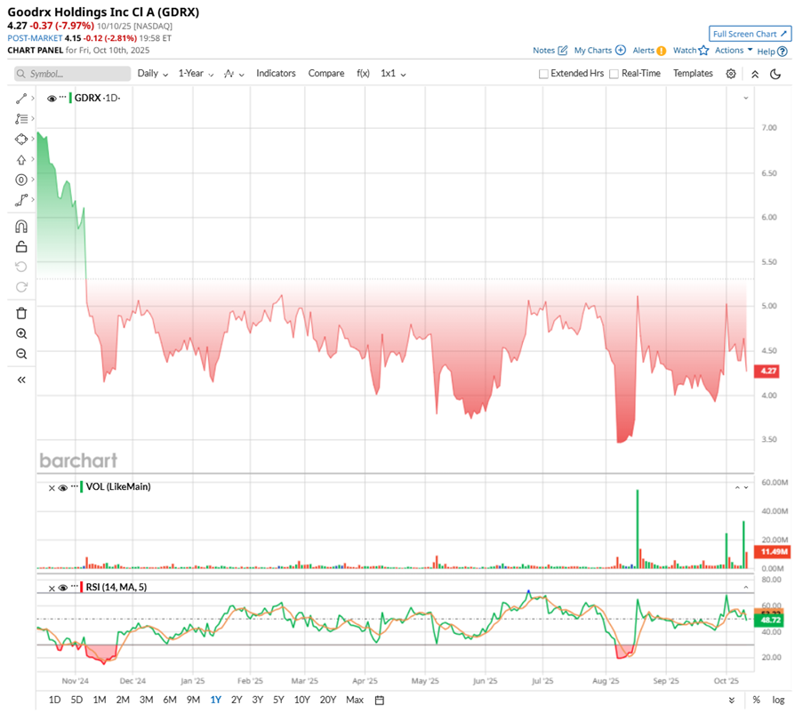 In early October, GDRX stock climbed after the company expanded its partnership with Kroger (KR), rolling out its RxSmartSaver program across 2,200 pharmacies, boosting investor confidence in its growth potential. The move even included discounts on popular weight-loss drugs.