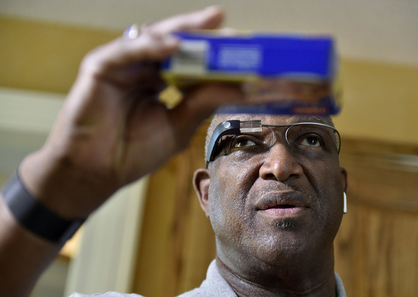 At home recently, he used the glasses and an agent to read the cooking instructions on the back of a package of chicken tenders. The glasses and agent also help with general mobility.