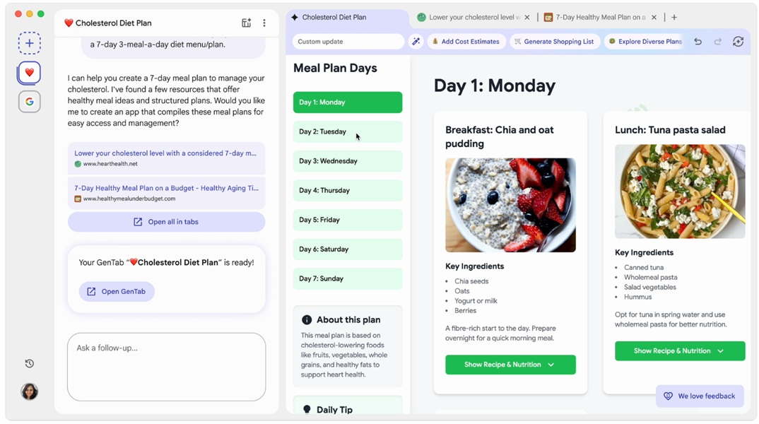 According to Google, GenTabs "are generated based on your specific tabs and your specific goal."