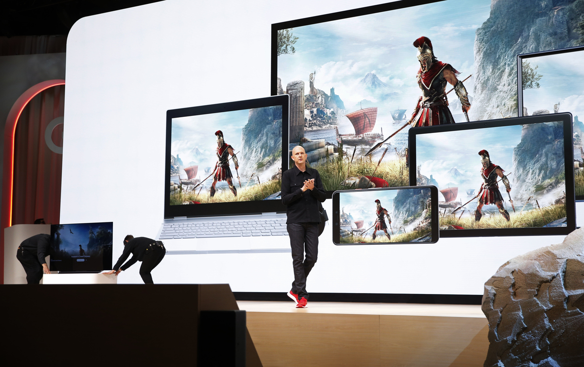Jade Raymond, head of Google's Stadia Games and Entertainment, speaks on stage during a keynote address announcing Google's new cloud gaming service, Stadia, at the Game Developers Conference in San Francisco, California, U.S., March 19, 2019. REUTERS/Stephen LamGoogle vice president and general manager Phil Harrison speaks during a Google keynote address announcing a new video gaming streaming service named Stadia that attempts to capitalize on the company's cloud technology and global network of data centers, at the Gaming Developers Conference in San Francisco, California, U.S., March 19, 2019. REUTERS/Stephen Lam