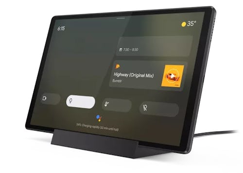 The Lenovo Smart Tab M10 is a 10-inch Android tablet that can work on its own but can also be docked in a “Smart Charging Station” and take the place of a smart home display by using Google Assitant Ambient Mode. It’s not exactly the same as a Nest Hub, but it offers all the functionality of Google Assistant, with screen-filling graphics to keep users up-to-date on all the topics they care about.