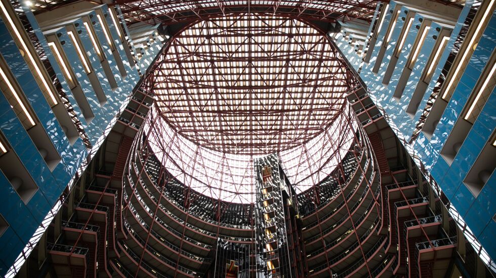 At Wednesday’s announcement, Reschke said, “We fell in love with this iconic treasure that Helmut Jahn and Governor Thompson built almost 40 years ago. The building is unique and irreplaceable.” He said the atrium, soaring for 17 stories, has as much space as a basketball arena.