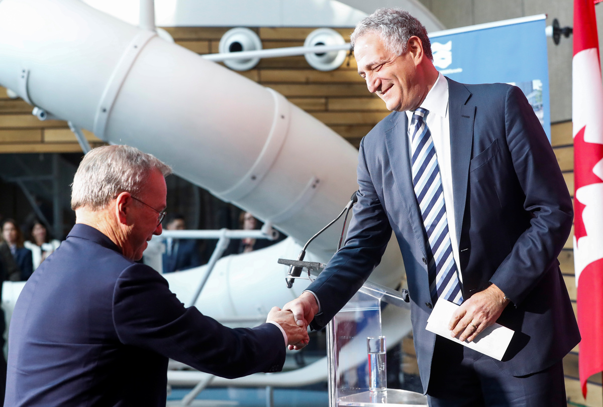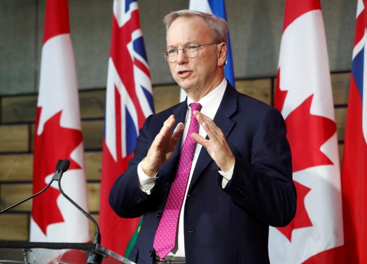 Executive Chairman of Alphabet Eric Schmidt speaks during a press conference where Alphabet Inc, the owner of Google, announced the project "Sidewalk Toronto", that will develop an area of Toronto's waterfront using new technologies to develop high-tech urban areas in Toronto, Ontario, Canada, October 17, 2017. REUTERS/Mark Blinch