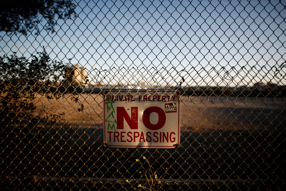 A "No Trespassing" sign is seen in the Port Lands, where Alphabet Inc, the owner of Google, is expected to develop an area of Toronto's waterfront after they announced the project "Sidewalk Toronto", using new technologies to develop high-tech urban areas in Toronto, Ontario, Canada, October 17, 2017. REUTERS/Mark Blinch