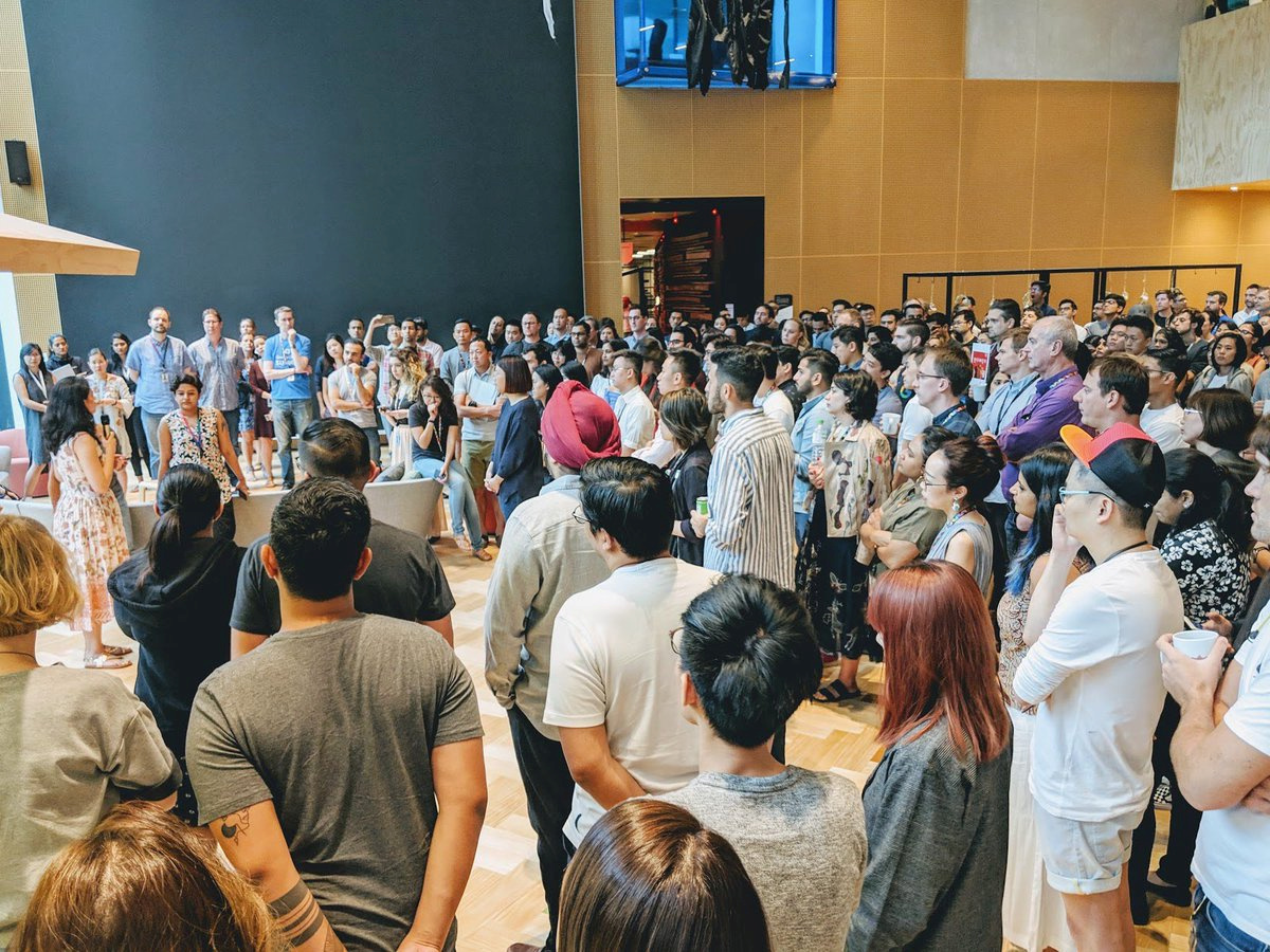 "This is what it means to be 'Googley,'" she urged the crowd to chant, invoking a widely used term for the company's culture. "People don't change because of law and policies. Laws and policies change because of people."