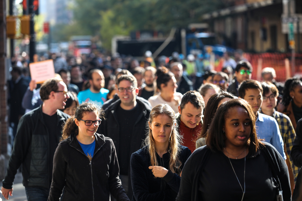 Organizers said about 60 percent of Google's offices participated, including Dublin, the company's largest site outside the United States, as well as London, Zurich, Berlin and Singapore. They shared photographs on social media of hundreds leaving offices.