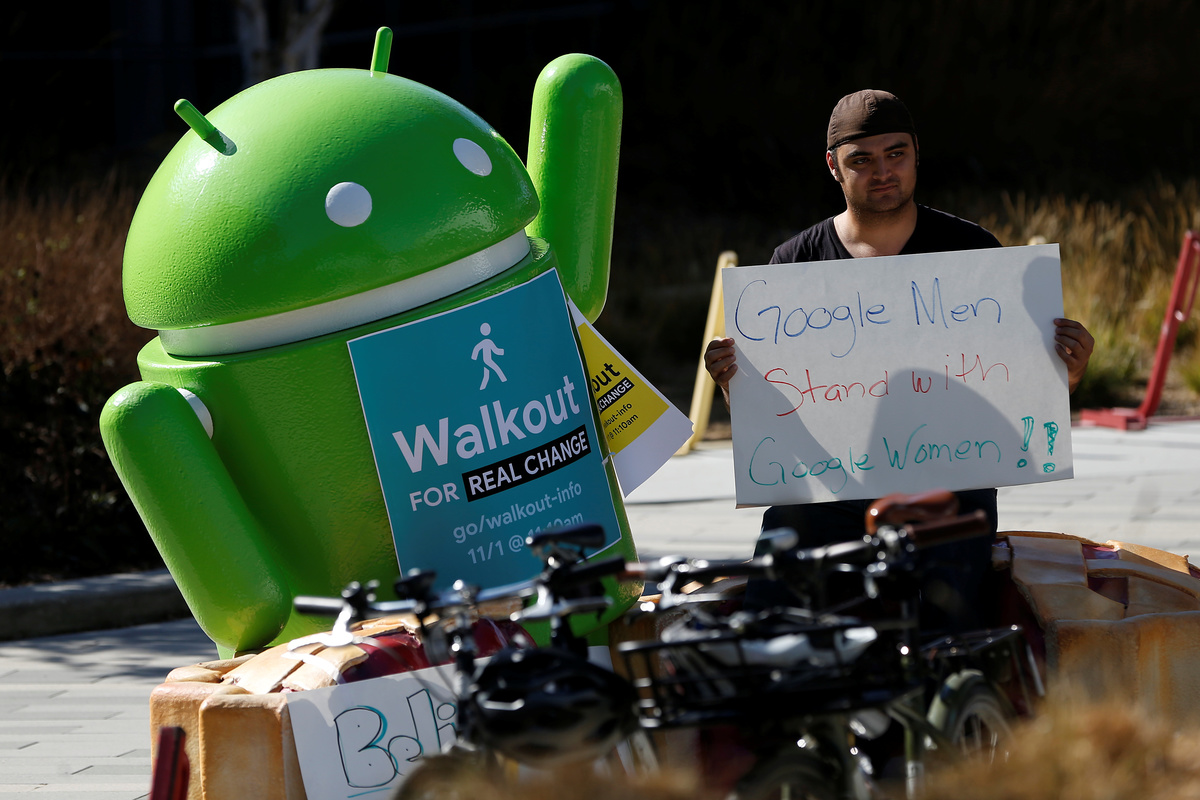 The protests, which drew Google contract workers as well as employees, followed a New York Times report last week that Google in 2014 gave a $90 million exit package to a senior vice president, Andy Rubin, after he was accused of sexual harassment.